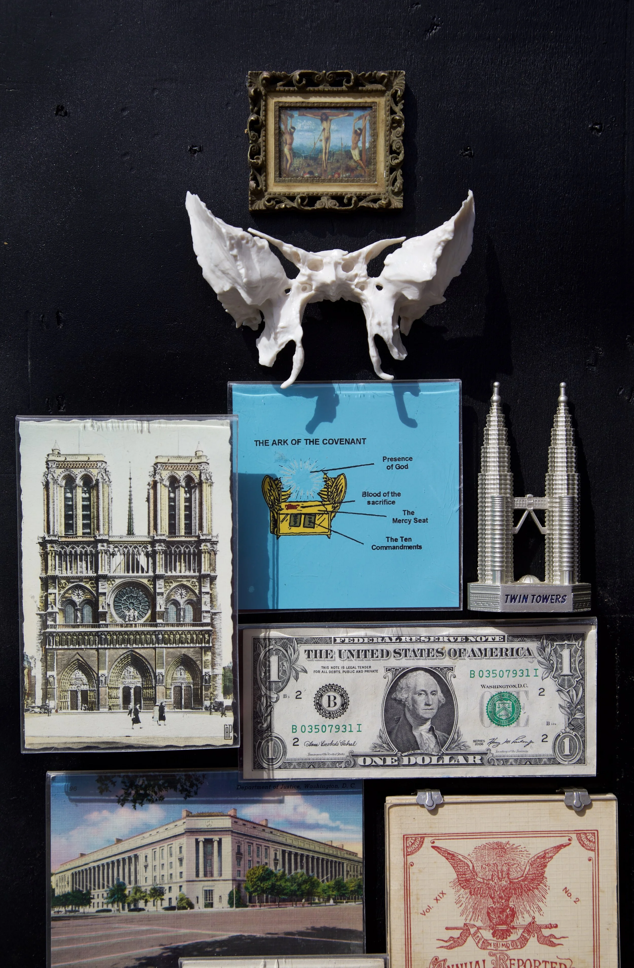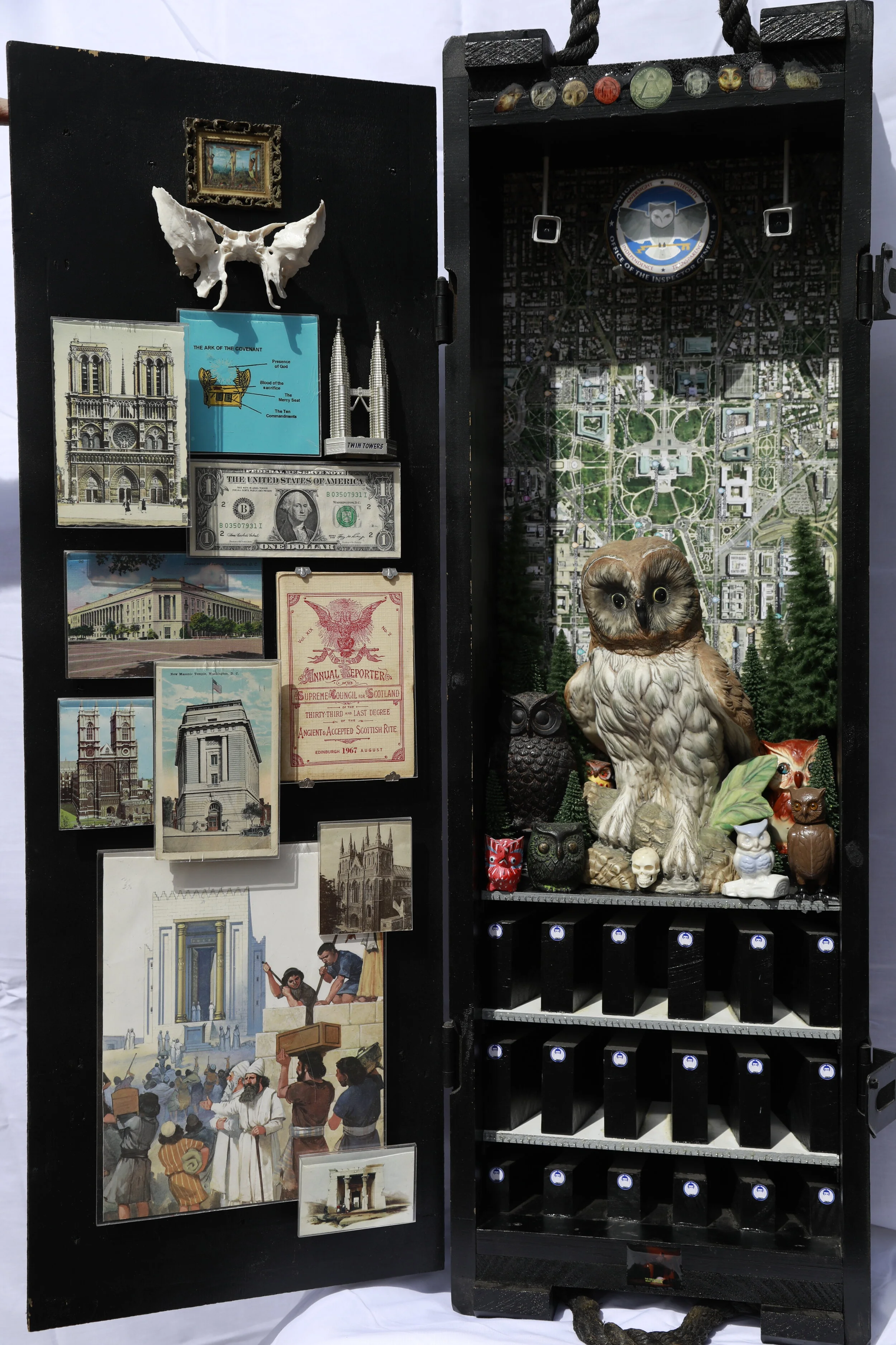 Devised and built while fighting Stage IV cancer, given just months to live, the spectre of judgement weighing heavily upon me. The work is comment on the seductive nature of all belief systems and how the line between fact and fiction can blur.